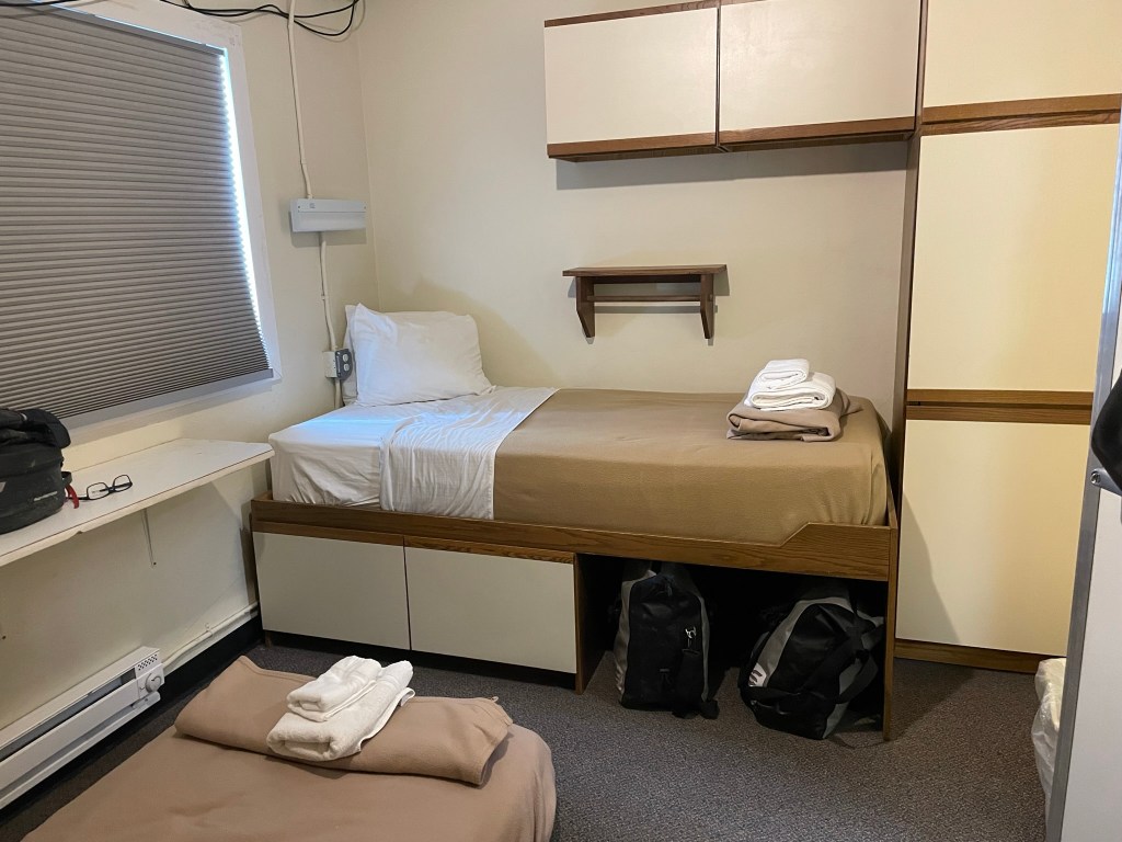 Accommodations are something between eastern bloc communist housing and run down dormitory. We’re being treated to one of the only rooms with three beds, with bathrooms down the hall. This is a bargain, apparently, at somewhere around $300/night. We take it, and immediately plan where we will roll out the mats. A coffee machine down the hall, near the “gym”, and we can kibbitz over coffee before moving the gym equipment, laying out our mats and firing up the laptop, first thing in the morning. A decent breakfast, and we mount up and look for the only fuel source in Deadhorse. Unmanned, you navigate an ancient digital screen to fire up your pump, and dispense the liquid gold. Sure, it’s taken out of the ground a quarter mile away, but it’s still $7.50/gallon.