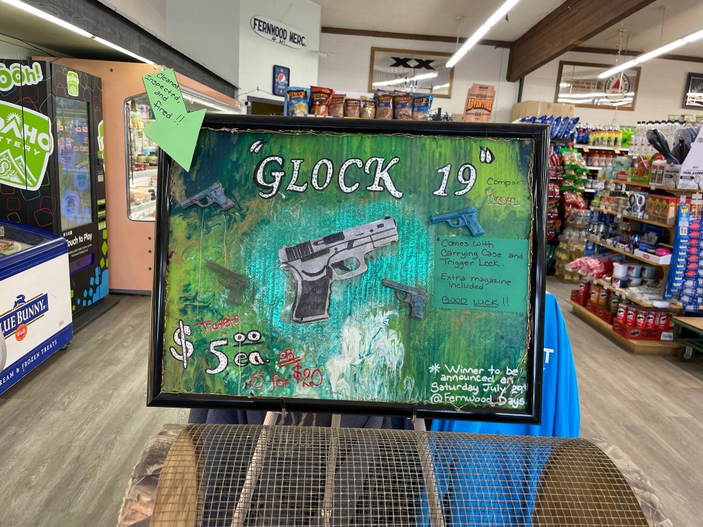 Gun being raffled off in a grocery store. We’re definitely back in the US…